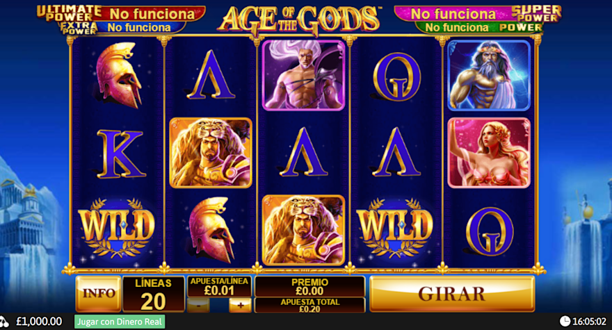 Age of the Gods es un juego de casino de 5 rodillos, 3 filas y 20 líneas de pago, está ambientada en la mitología griega, este juego fue desarrollado por Playtech. Aunque lleva muchos años en el mercado, sigue siendo uno de sus juegos más populares hasta la fecha. Con una tasa de RTP del 95% y un índice de volatilidad medio.