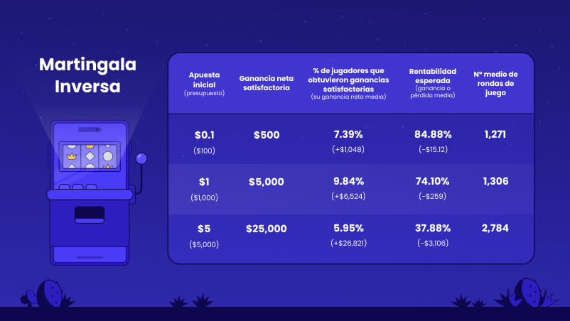 El sistema de Martingale Inverso tiene como objetivo minimizar las pérdidas, sobre todo durante una mala racha.