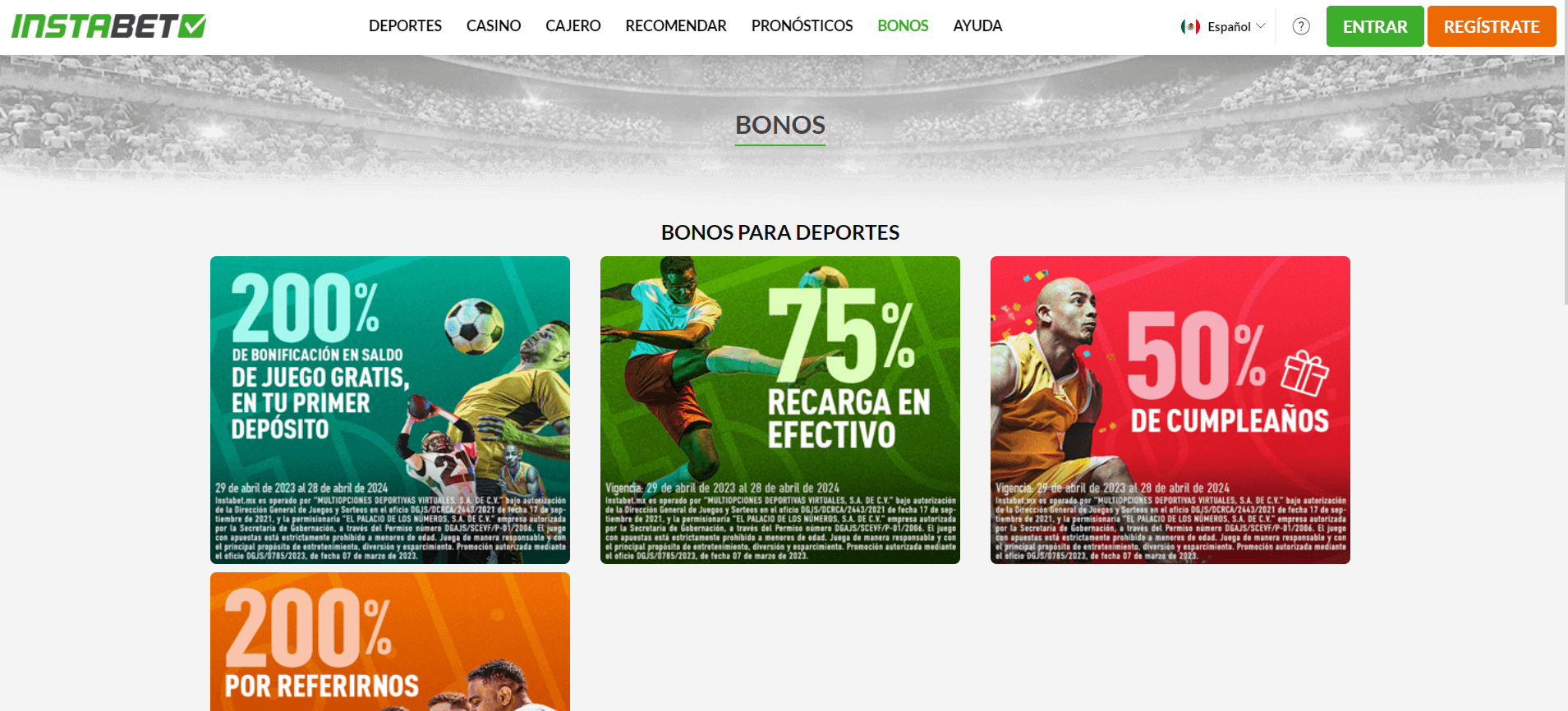 Una vez dentro de Instabet México, selecciona el botón “REGÍSTRATE”.